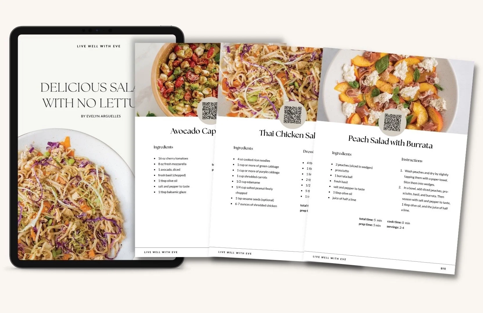 PDF Delicious Salads With No Lettuce Get 15 of my favorite recipes of Salads with No Lettuce by filling in the boxes below! First Name Last Name Email Address DOWNLOAD Enjoy these recipes and tag me in your stories @livewellwitheve when you make them!